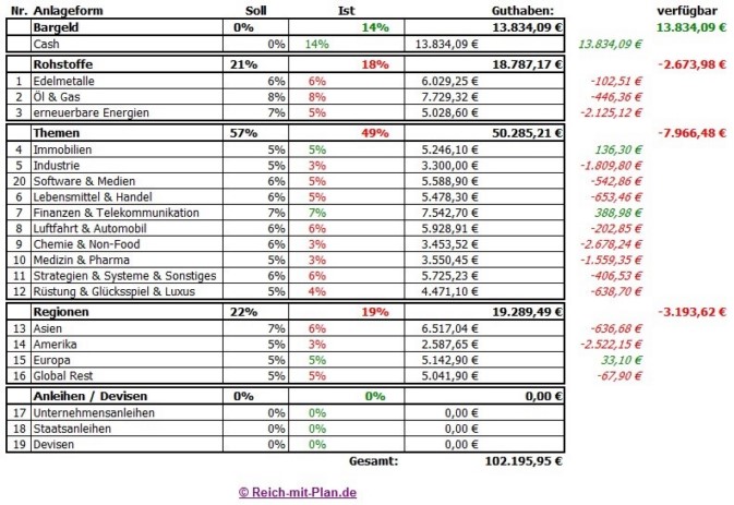 Die Neuauflage dieses Musterdepots erfolgte im Oktober 2012. Lest euch bitte bei Bedarf die grundlegenden Informationen auf der Musterdepotseite durch. Die Strukturierung des Musterdepots erfolgt mit der Vermögenstabelle. Die Tabelle könnt ihr euch im Download-Bereich herunterladen.