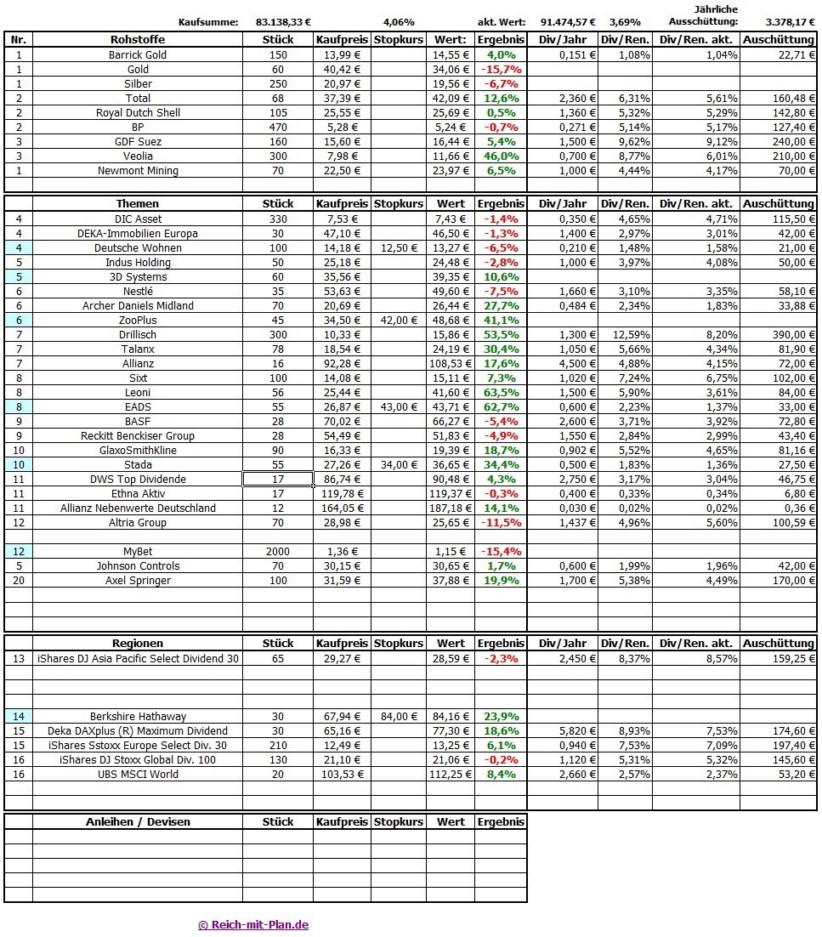 Die Neuauflage dieses Musterdepots erfolgte im Oktober 2012. Lest euch bitte bei Bedarf die grundlegenden Informationen auf der Musterdepotseite durch. Die Strukturierung des Musterdepots erfolgt mit der Vermögenstabelle. Die Tabelle könnt ihr euch im Download-Bereich herunterladen.