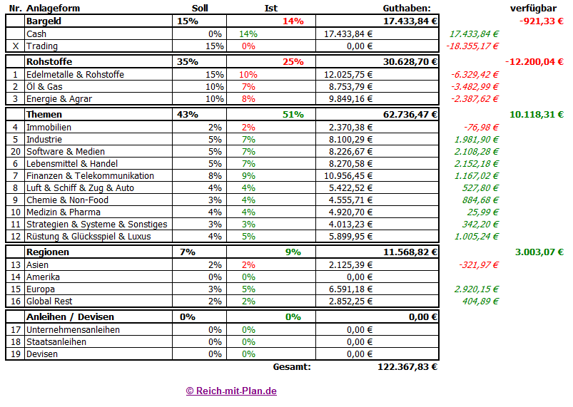Das Musterdepot ist mittlerweile investierbar. Vielen Dank an alle Interessenten die geholfen haben das Wikifolio investierbar zu machen. Das Wikifolio kann an der Börse gehandelt werden. Die Strukturierung des Musterdepots erfolgt mit der Vermögenstabelle. Die Real-Time Aktienkurse findet ihr direkt auf der Musterdepotseite bei Wikifolio.