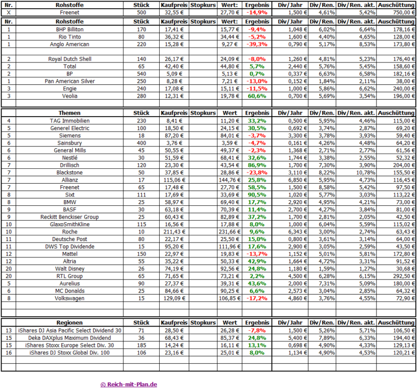 Das Dividendenmusterdepot konnte sich in den letzten Tagen bereits wieder gut erholen. Ganze 3% in 14 Tagen sind es geworden. In erster Linie konnten sich die Rohstoffwerte stark erholen. Dabei hat der Markt noch nicht einmal eine richtige Erholung gezeigt. In zwei Wochen ist in diesem Musterdepot das Laufzeitjahr rum. Ich bin gespannt auf das Endergebnis und freue mich zugleich frisch in die neuen 12 Monate zu starten.[/styled_box]