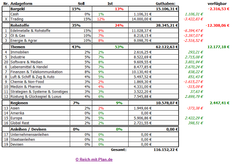 Alle Transaktionen sowie die Platzierung von Stopkursen werden hier im Blog und in den Wikifolio-Kommentaren kommuniziert. Die Auswertung des Musterdepots erfolgt monatlich. Der aktuelle Stand ist jederzeit auf Wikifolio abrufbar.