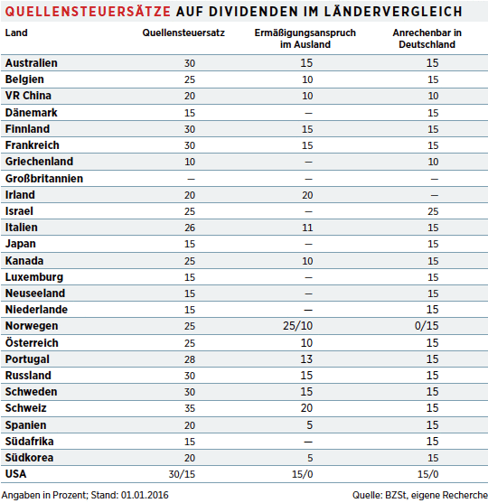 Durch diese gefühlte Ungerechtigkeit, beginnt man sich nun mit der Quellensteuer-Thematik zu beschäftigen und versucht einen höheren Steuerabzug zu vermeiden. Erst jetzt treffen viele Leser auf das Thema Anrechenbarkeit oder Rückholung von Quellensteuer. So gibt es Länder die nur eine geringe Quellensteuer aufweisen und welche auch zu 100% angerechnet wird. Steuerunfreundliche Länder erkennt man nun auch sehr schnell. Hier bedarf es meist bürokratischem Aufwand, Zahlung von Gebühren oder einer sehr langen Wartezeit bis man seinen zuviel gezahlten Ertrag zurückerhält.