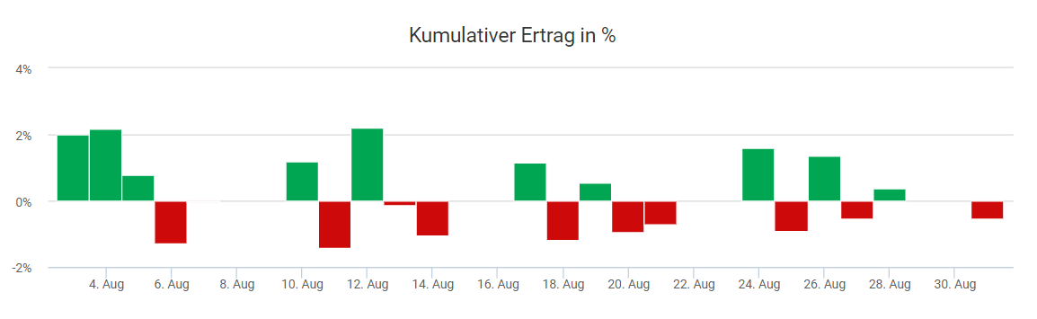 Der August war gar nicht so schlecht, wie er sonst historischerweise sein kann. In Summe hat sich mein Jahresergebnis um 4 Prozentpunkte verbessert. Womit ich natürlich sehr zufrieden bin. Ein Blick auf meine Vergleichswerte zeigt, wie ich am Ende abgeschlossen habe und hier waren die US-Indizes wieder einmal uneinholbar unterwegs. Mein Jahresergebnis verbessert sich weiter sukzessive und mittlerweile konnte ich einen weiteren Vergleichswert einholen. Ein weiterer Benchmark-Wert steht in direkter Reichweite und ich hoffe ihn in den kommenden 4-8 Wochen auch überholen zu können. Die letzten Monate des Jahres bleiben damit spannend bis zuletzt.