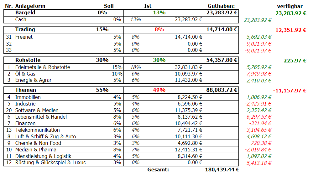 Die Strukturierung des Musterdepots erfolgt mit der Excel-Datei Vermögenstabelle. Newsletter Abonnenten können die Datei im Download-Bereich kostenfrei herunterladen. Eine Übersicht der vergangenen Musterdepotjahre findest du auf dieser Seite.
